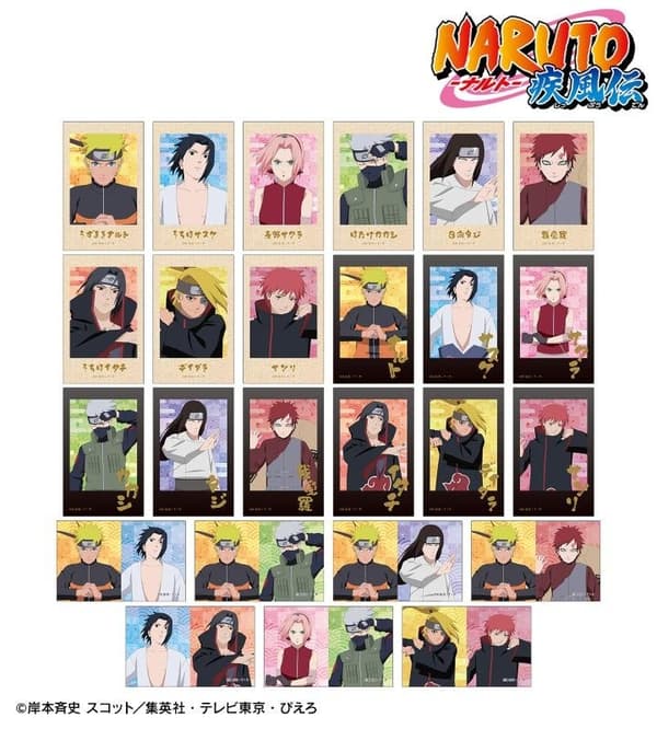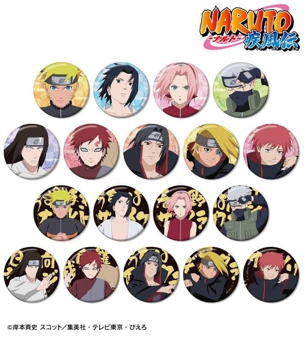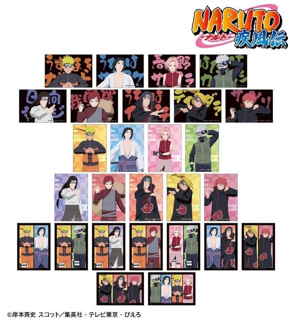 该商品以新绘制的漩涡鸣人、宇智波佐助、春野樱、旗木卡卡西、日向宁次、我爱罗、宇智波鼬、迪达拉和蝎的插图为特色。