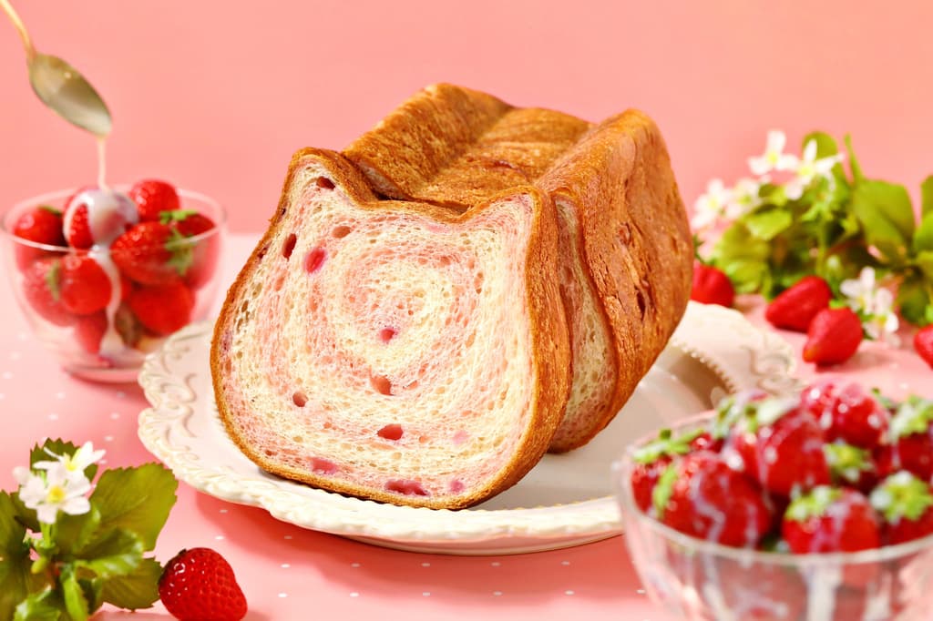 新款“Neko Neko Shokupan炼乳草莓”现在于Neko Neko Shokupan限时发售。这款面包的特色是由含有草莓果酱碎片的草莓味面团和炼乳馅料分层制成,并烘烤成迷人的漩涡图案。草莓的酸甜味道与炼乳的柔和甜味融合在一起,创造出一种类似甜点的风味体验。