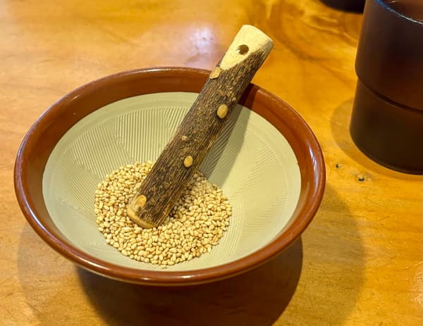 让这个地方真正有趣的是,在等待拉面送达时,您可以自己用研钵研磨芝麻!这种体验非常有趣。