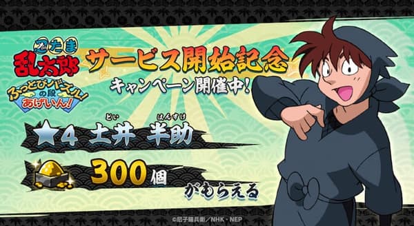 《忍者乱太郎:飞跃益智!之段再临!》为庆祝服务上线,将举办特别活动。所有用户都将获得 ★4 角色“土井半助”和“300 金币”,可用于进行 10 次高级扭蛋。