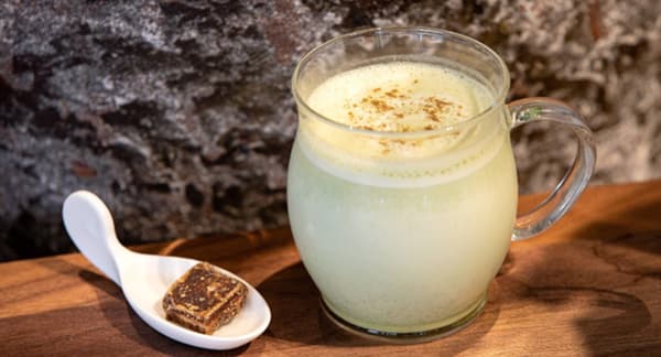 丝滑的岛豆腐与豆奶相结合,制成这款浓郁、健康的豆奶拿铁。甜咸的慕斯和芳香的花生味与红糖和姜的温暖气息融合在一起,轻轻舒缓旅途疲劳。