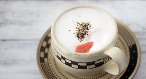 在这款新饮品中体验“可饮用的明太子”。博多灵魂食物明太子的浓郁鲜味和质地,被包裹在白味噌和黄油的醇厚混合物中。这款浓郁、奶油味的拿铁是真正的“可饮用美食”。蘸上酥脆的法棍,尽情享受这深厚的和谐。