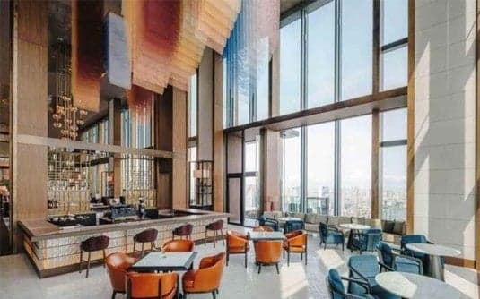 在宽敞的区域内,象征性的汉白玉柱支撑着约13米高的天花板,您可以享用豪华的草莓下午茶。在威斯汀花园欣赏樱花盛开的特别体验。