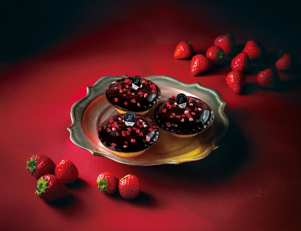 体验柔滑芝士挞与酥脆巧克力涂层之间的美妙对比,以及可可带来的浓郁复杂风味。草莓的清新酸味和轻盈口感为这款精致的创作增添了另一层享受。