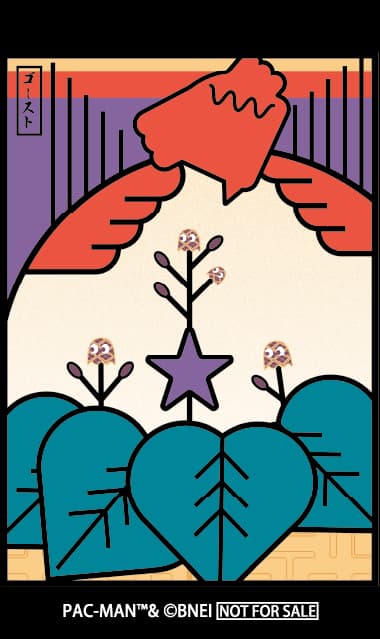 在这件作品中,吃豆人的图案被叠加在这些光牌上。吃豆人只存在于一张光牌上,而幽灵则被限制在充当其“鬼屋”的牌上。传统设计与游戏角色的交汇创造了一种新的表达广度。