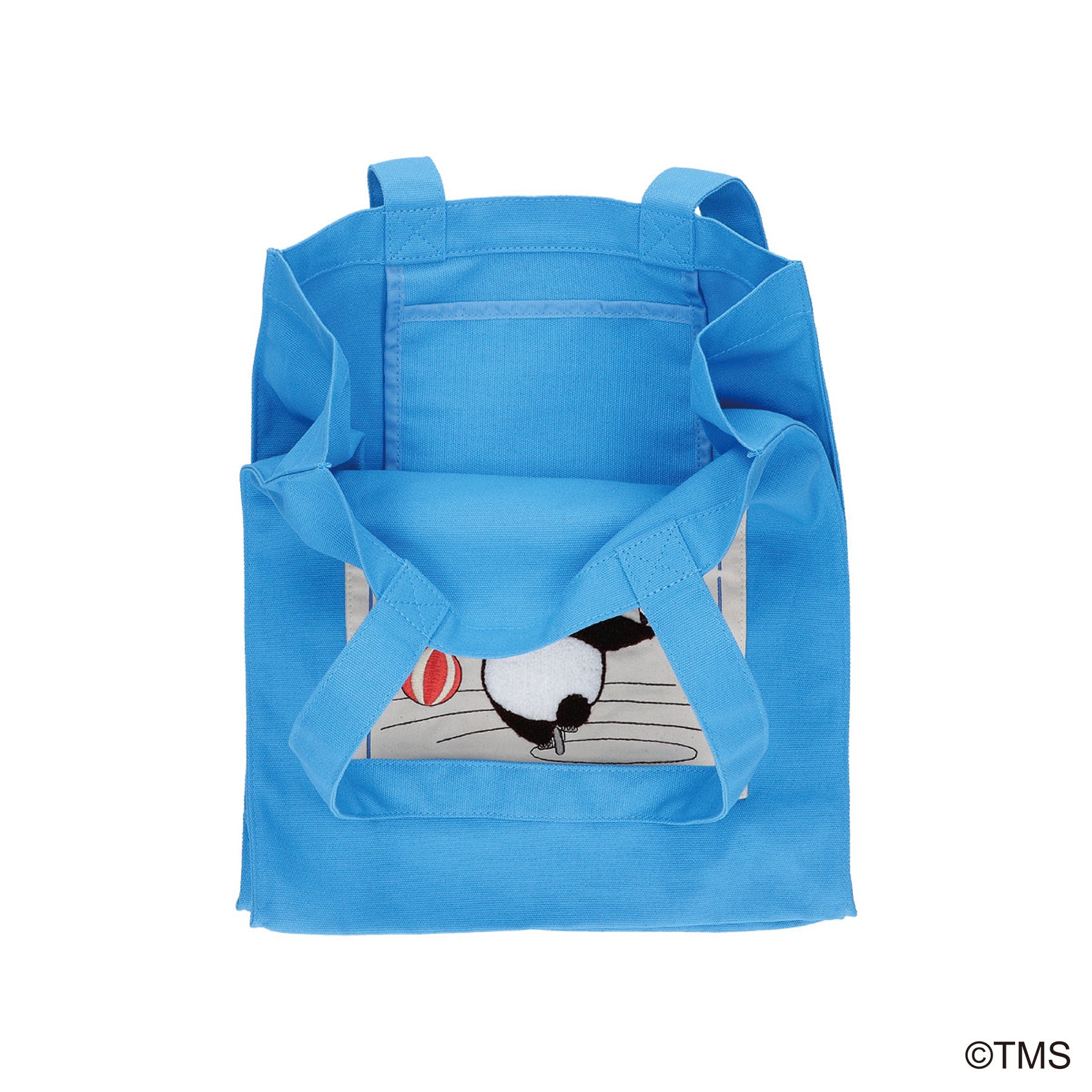 这款托特包采用鲜艳的蓝色面料,大口袋上设计有熊猫爸爸、小熊猫和虎仔的图案。刺绣的英文电影标题中隐藏着火车的设计,熊猫爸爸则采用蓬松的sagara刺绣,带来俏皮的纹理感。这款A4尺寸的带侧边包可以容纳文件和透明文件夹,设计区域还包括一个大的外部口袋,以及一个用于放置手帕和小物件的内部口袋。非常适合通勤上学或郊游。