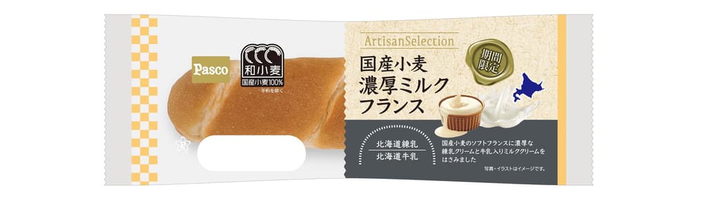 敷岛面包(Pasco)将于2026年1月1日(星期四)在关东、中部、关西、中国和四国地区限时发售匠选系列新品**“国产小麦浓厚牛奶法式面包”**。