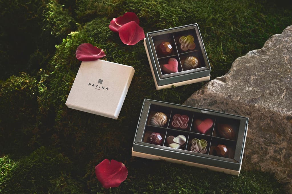 この特別なコレクションは、ブランドを象徴する蝶のモチーフなど、パティナのシグネチャーチョコレートと、バレンタインシーズン限定のハート型チョコレートを組み合わせたものです。各チョコレートは、大阪パティナのサステナブルな哲学と、ホテルメイドの繊細な味わいを体現しています。