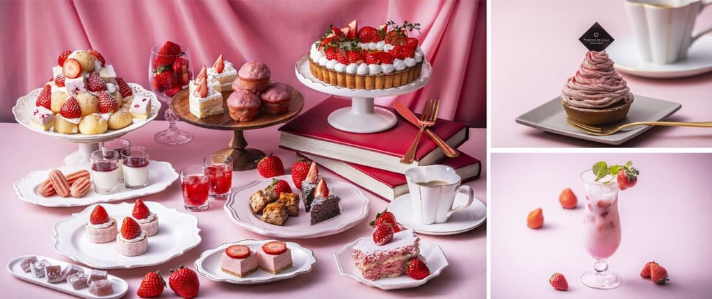 自助餐厅的甜点区提供草莓与奶油食材相结合的甜点。阵容包括蓬松的草莓卷蛋糕、草莓香味的烤饼、草莓提拉米苏、草莓味蕨饼、草莓味蜜瓜包和经典草莓奶油蛋糕。晚餐时段提供15种草莓甜点,午餐时段提供8种。仅在周六和周日的晚餐时段,还会特别推出草莓年轮蛋糕!