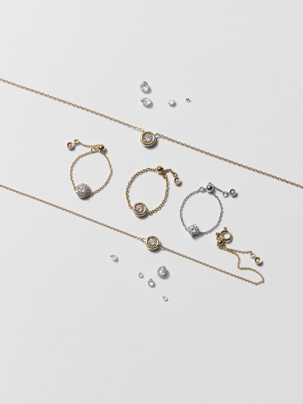 一个使用合成莫桑石的系列,莫桑石是一种无色透明的实验室培育宝石,其色散度约为天然钻石的2.5倍,且不含杂质。