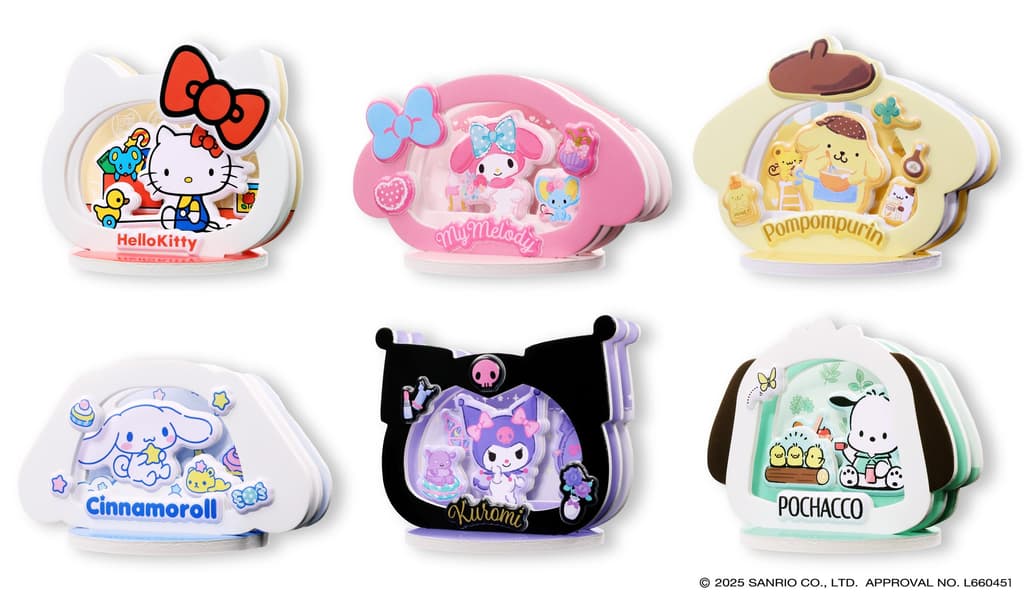 Ensky Co., Ltd.(总部:埼玉县草加市;总裁:川田裕司)通过企划和销售以角色玩具为中心的原创产品,为所有顾客带来欢乐的瞬间。为庆祝“PAPER THEATER”系列(从纸上剪下著名场景)迎来10周年,Ensky将推出一个名为“Puku Puku PAPER THEATER”的新系列,包含六款产品:PT-P01 Hello Kitty、PT-P02 My Melody、PT-P03 Pompompurin、PT-P04 Cinnamoroll、PT-P05 Kuromi和PT-P06 Pochacco。将于2025年12月23日(星期二)起在Ensky官方在线商店“Ensky Shop”和各大零售店陆续开始销售。