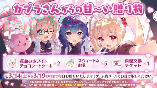 第二阶段将提供“命运白色巧克力蛋糕”、“甜蜜感谢”和“烹饪兑换券”作为每日登录奖励。