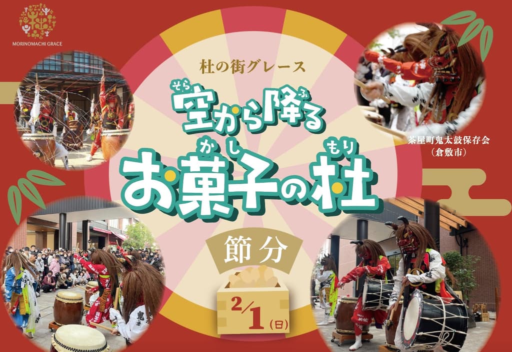 2026年2月1日(周日),充满鬼太鼓轰鸣和“绿雉红”热情的特别日子,即将来到冈山市中心的杜之街Grace。
