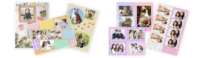 该服务是夏普营销日本"网络打印"平台的一部分,用户可在照片和图片上添加多种边框后,在附近的便利店进行打印。模板涵盖圣诞节、万圣节等季节性主题设计,以及贴纸机风格版式。用户还可以为作品添加印章和文字。