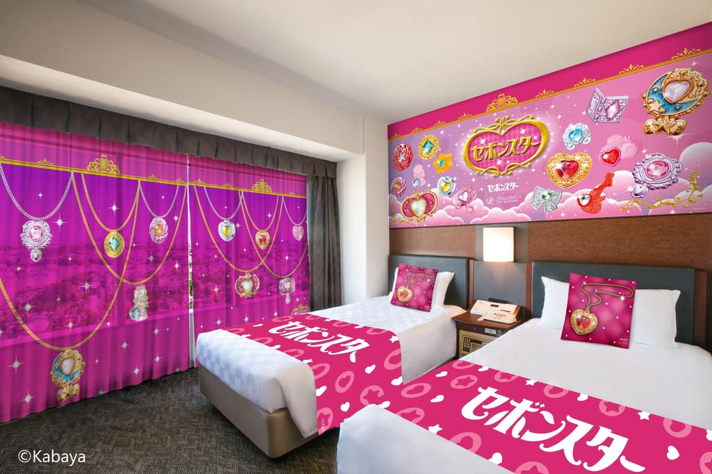 概念客房以“Sebon Star”的闪耀世界为主题,采用可爱的装饰。在整个房间里,以吊坠设计为灵感的装饰元素营造出一个沉浸式的空间,将粉丝们的梦想带入“Sebon Star”的世界。