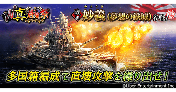 2隻の新しい真・蒼炎祭の艦が「W真・蒼炎祭」で同時にデビューします——空母 大鳳(残照たる嵐)と戦艦 妙義(無双の鉄女)。★5艦を入手すると、真・蒼炎祭の艦のいずれかが確定します。このイベントでは、10連サルベージの回数に応じたボーナスや、対象艦の獲得時のラッキーボーナスもあります。