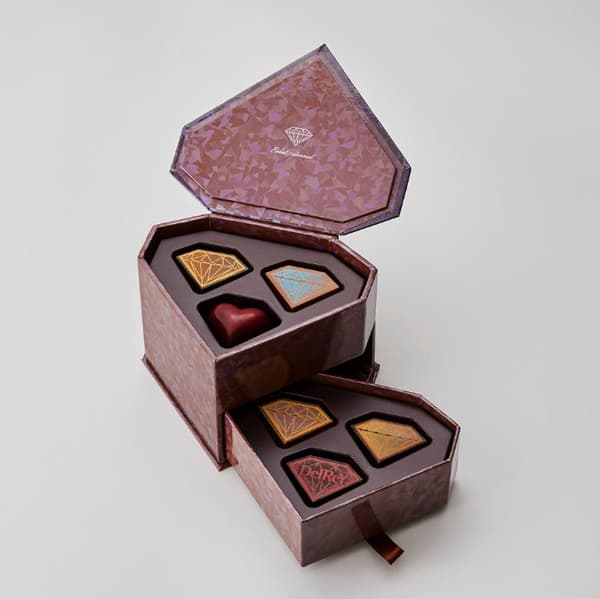 推出庆祝2026年的热门口味和带有DelReY标志的限量口味。酸甜多汁,新鲜水果风味在口中爆发。薰衣草的淡淡香味轻轻飘散。尽情享受这些装饰在BOX上的巧克力,其设计灵感来自彩色钻石。