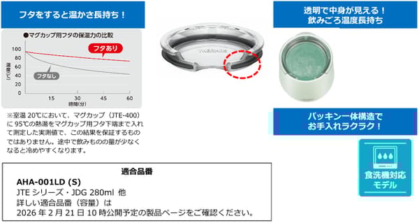 膳魔师公司是真空绝缘技术领域的全球领导者,致力于提供舒适且环保的生活方式解决方案。该公司将于2026年2月21日(星期六)发售真空保温杯(JTE-300/400)和马克杯盖AHA-001LD(S)。