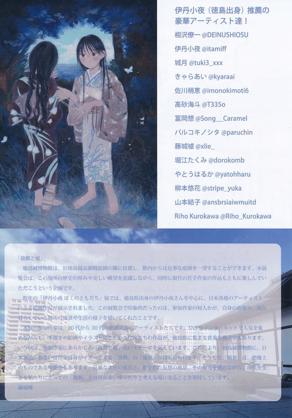 本次展览的参展艺术家都是20多岁和30多岁的新兴艺术家。这是一个难得的机会,可以看到在社交媒体和互联网上获得人气的艺术家的作品,同时仍然坚持手绘绘画和插图,所有这些都聚集在德岛县。