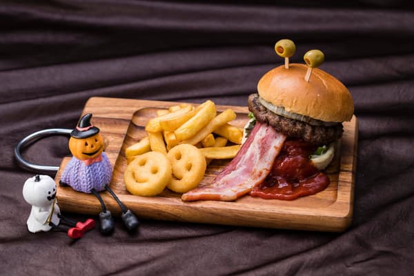 其中一个亮点是Miguel Juani的“眼球幽灵可丽饼”,以紫色红薯可丽饼为特色,里面填充了海绵蛋糕和稀有奶酪,顶部放着一个滚动的眼球果冻。Sekai no Beer Hakubutsukan(世界啤酒博物馆)提供“怪物汉堡”——一种放纵的创作,培根溢出,多汁的牛肉饼和浓郁的风味激发食欲。这款100%牛肉饼与伊比利亚猪肉培根相结合,创造出真正怪异的季节性汉堡。