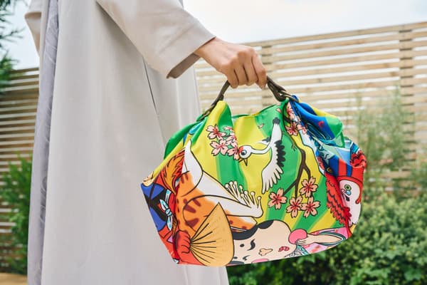 风吕敷包布(5种款式 / 每款3,630日元,含税)可以作为挂毯展示在墙上,用于艺术室内装饰。