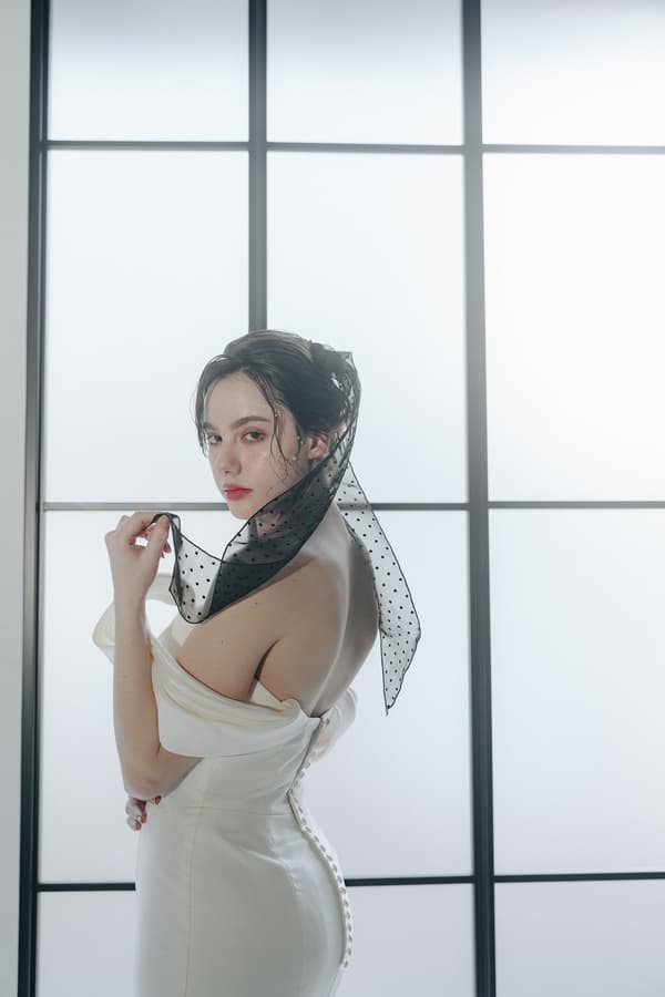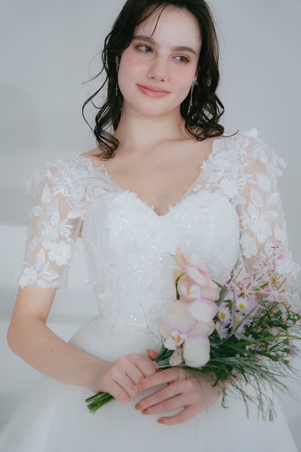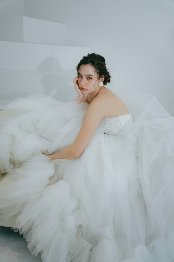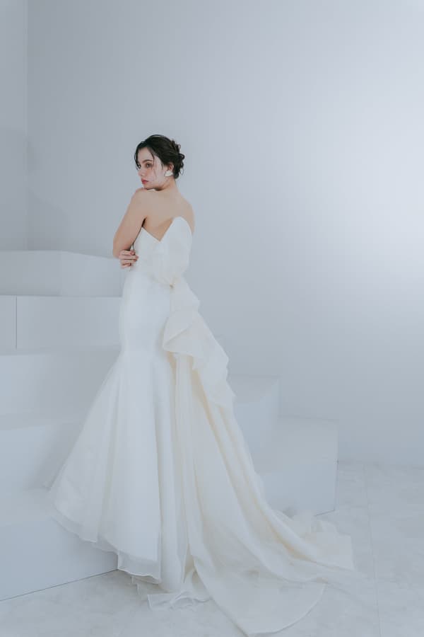 英語で「魅了する」を意味する「Dazzle」は、シンプルで洗練されたマーメイドラインが存在感を高めるドレスです。高品質のサテンオーガンジーの適度な光沢が、エレガンスの中に女性らしい柔らかさを加えます。ウエストの切り替えと付属のアイテムに細心の注意を払い、着用者が自信を持って特別な日を迎えることができるように仕上げられています。