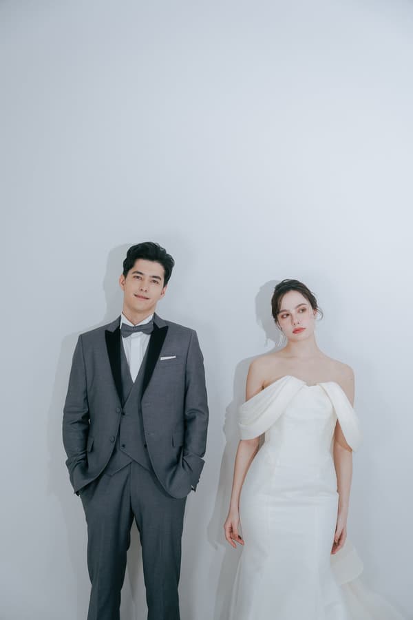 このスタイリッシュなタキシードは、落ち着いたトーンと光沢を抑えたマットな質感が特徴です。幅広い年齢層で着やすく、花嫁に優しく寄り添うようにデザインされています。柔らかく伸縮性のある生地は、快適な着用を保証します。黒のピークドラペルとリバーシブルベストが衣装にアクセントを加え、世代やシーンに関係なくエレガントなスタイリングを可能にします。