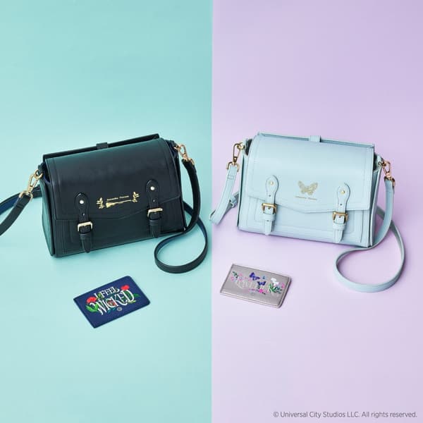 这些单肩包捕捉了电影中艾浮芭和格琳达所穿礼服的颜色。 艾浮芭的设计以扫帚为主题,唤起了她的魔法力量,而格琳达的包则展示了一只闪闪发光的蝴蝶,代表了她优雅的存在。