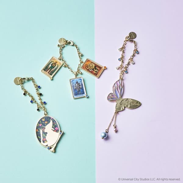 挂饰系列包括三种款式:格琳达风格的蝴蝶图案、以艾浮芭的轮廓为特色的挂饰(整体图案与包袋的衬里相匹配)以及故事中出现的角色的设计。 将它们与同一系列的包袋搭配,打造完整的协调造型。
