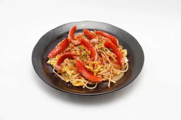 使用略粗且有嚼劲的半田素面。令人食欲大开的麻油香气。用辣椒和黑胡椒调味,使其略带辛辣。关键点是红色香肠,与形象颜色相符!