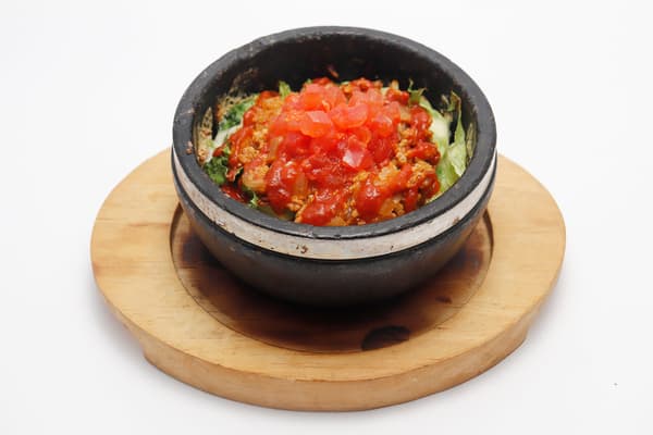 尽情享用这款热气腾腾的石烤塔可饭,搭配酸度和深度丰富的番茄酱、带有适度辣味的香辣塔可肉和鳄梨酱!