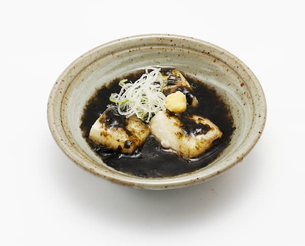 为了表达深色,关键在于用高汤制作的手工海苔酱。请尽情享用涂满海苔酱的炸年糕。