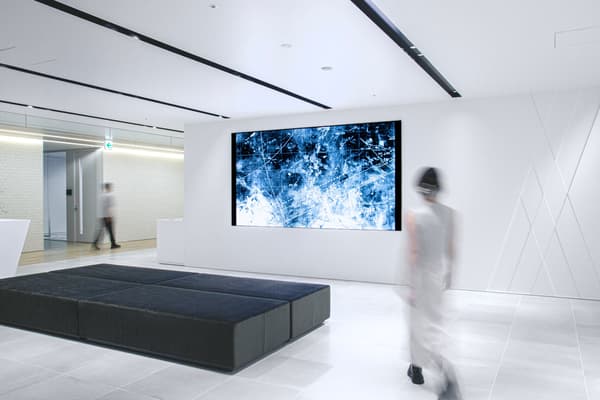 Created for the DENSO Tokyo Branch office entrance, this work was developed through Okumura's research into the company's activities, layered with his own concerns. It demonstrates the new perspectives that emerge when different domains of corporations and artists intersect.