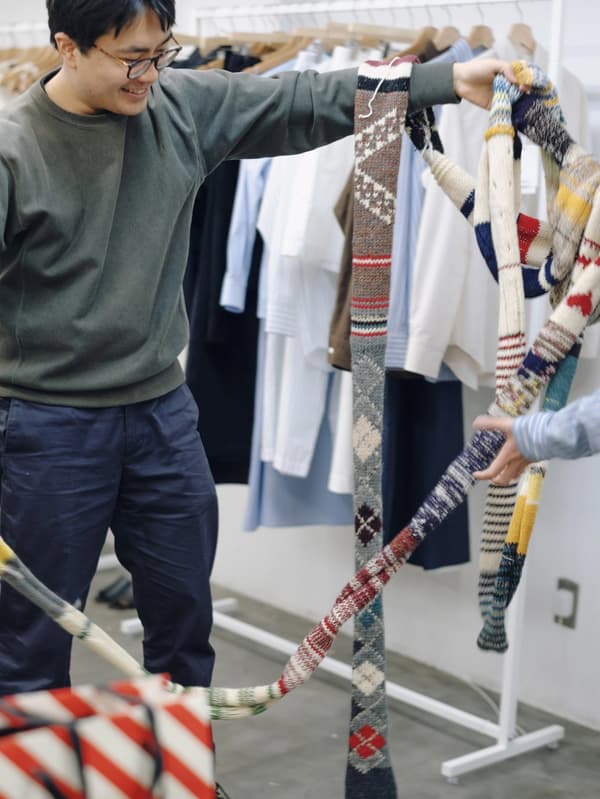 This research-based project by TALK NONSENSE, a design/research team founded in 2024 in Tokyo by Shingo Kokaji and Yuki Oki, draws inspiration from the "Knitting Bee" held in New York's Central Park in 1918 during wartime. Citizens collaborated in public spaces to knit needed clothing. The project attempts this practice in modern-day Tokyo through a participatory exhibition and street-based workshops centered in Yurakucho.