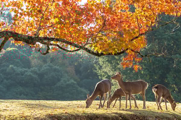 在奈良,您可以看到数百只鹿自由漫步。这些友好的鹿常常跟随游客,希望得到鹿仙贝作为零食。您将有充足的时间与它们互动并拍摄难忘的照片。