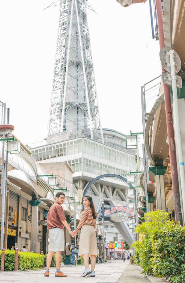 ☀️加入我们在大阪新世界的摄影体验,我们的高素质摄影师将在新世界的各种背景下捕捉您最美好的时刻。我们确保自然构图,寻找完美的拍摄地点,并根据您的日程安排提供特别的体验。