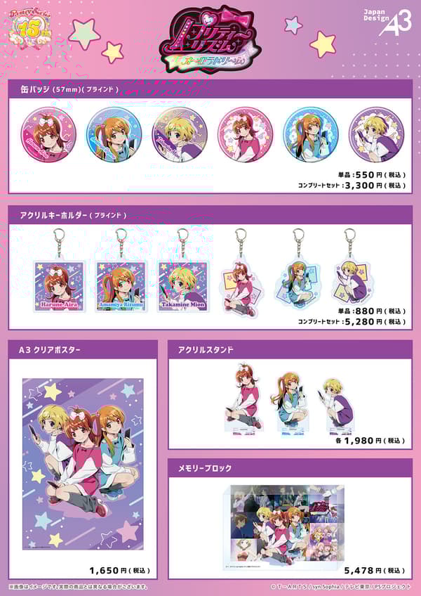 為紀念《星光》系列 15 週年,全新的《星光少女:極光之夢》商品已上市。這些商品目前可透過線上商店「eeo Store online」以及日本各地的動漫零售商購買。該系列中的每一件商品都以全新繪製的愛良、律舞和美音插圖為特色。