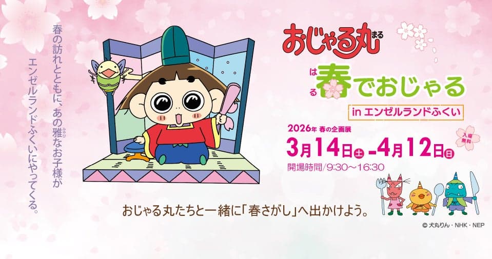 熱門NHK動畫「小麻雀」來到天使樂園福井。與來自平安時代的小麻雀和朋友們一起展開「尋找春天」的冒險吧。