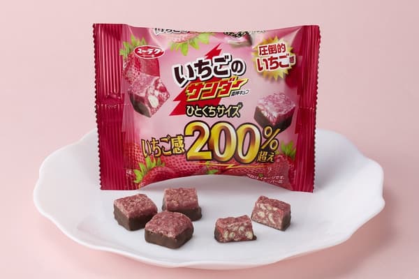 "Ichigo no Thunder Hitokuchi Size Ichigo-kan 200% Choe" responds to the "expectation for intensity" cultivated by the "200%+ Choco Flavor" variant, this time putting strawberry flavor in the spotlight.