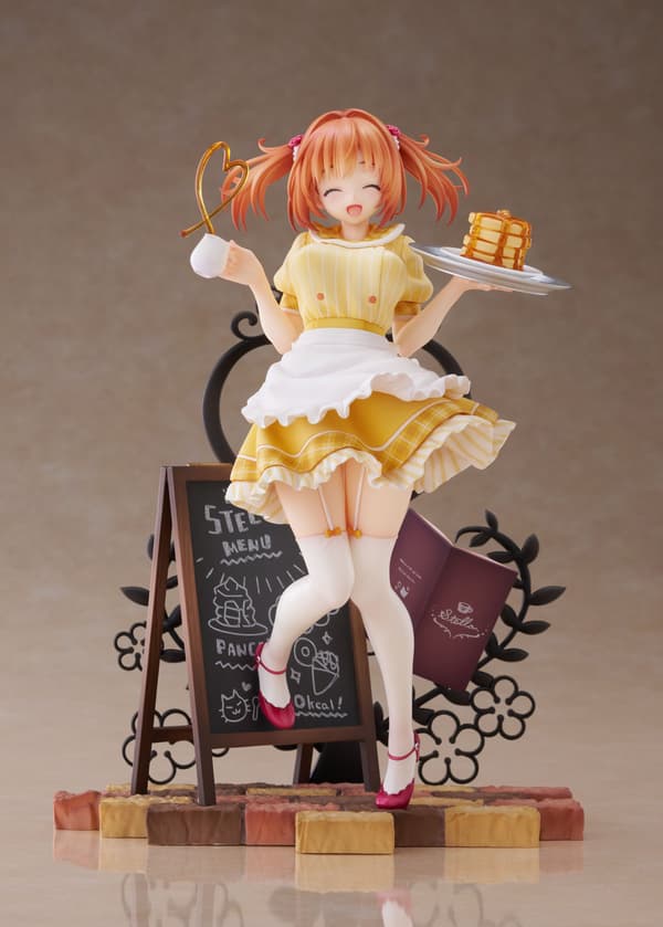 The bright and cheerful childhood friend character Nozomi is sculpted in her cafe uniform, carrying an order with her signature smile. The figure also includes an optional open-chest body part for an alternate display.