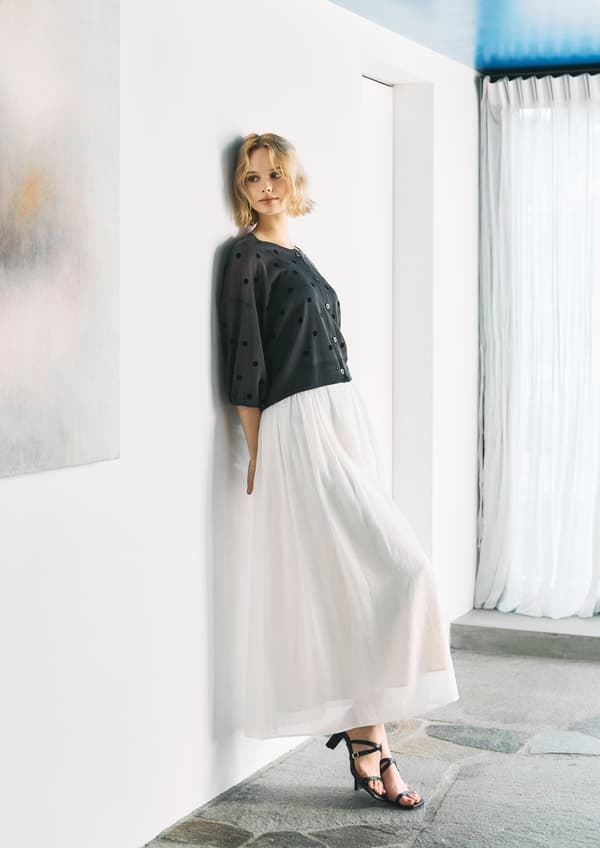 Cardigan ¥15,400 / Skirt ¥17,600
