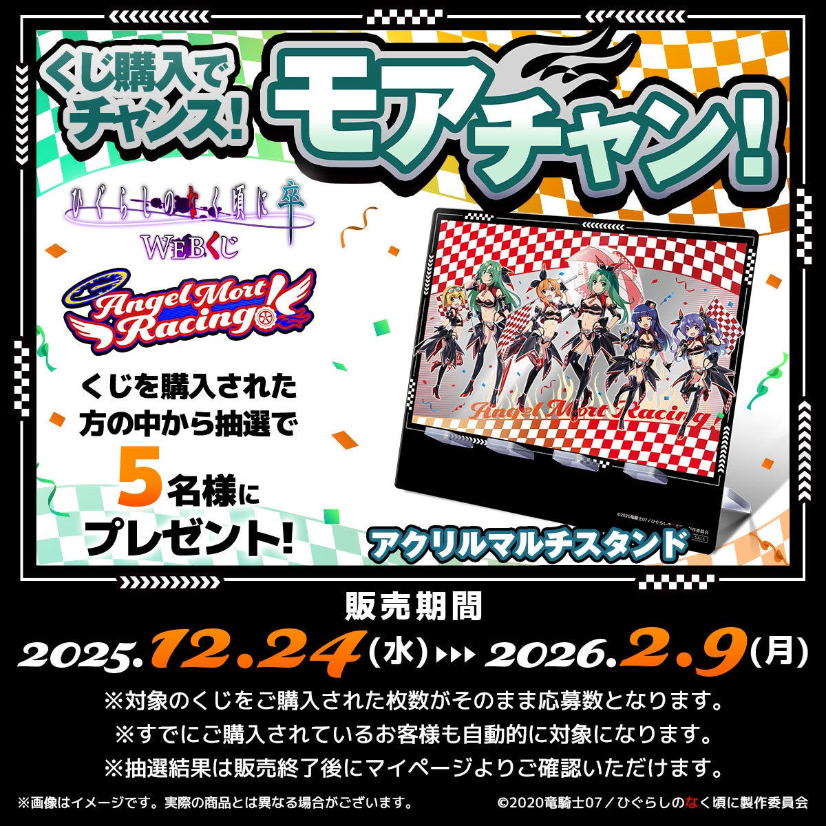 D-techno Co., Ltd. (Headquarters: Minato-ku, Tokyo; President: Takaaki Ichihara) has launched the "Higurashi: When They Cry – SOTSU Web Lottery 'Angel Mort Racing!'" on December 24, 2025 (Wednesday).