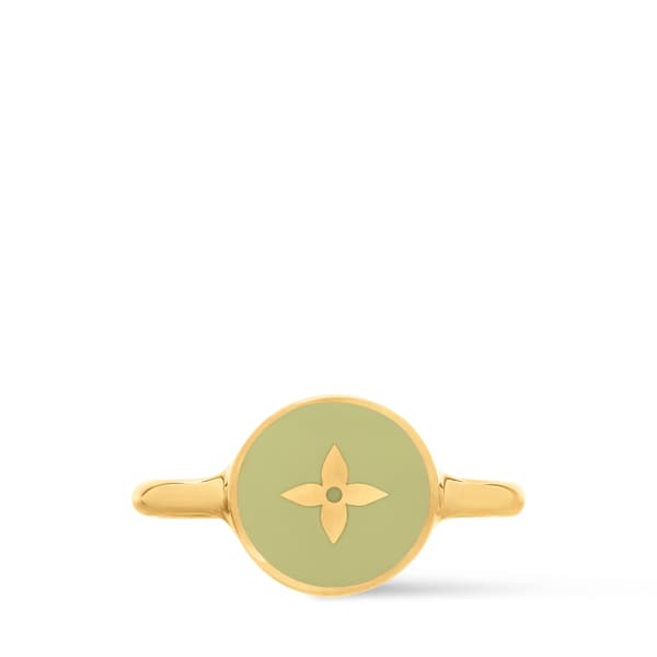 The LV Confetti Ring, finished in glossy gold-colored metal, pays homage to the iconic Monogram signature in a cheerful, festive atmosphere. A playful design featuring delicate Monogram motifs on colorful enameled pieces.