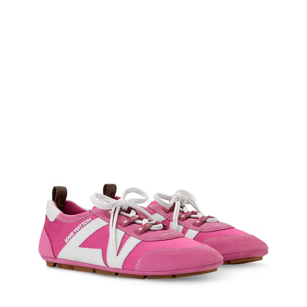 The LV Sneakerina combines technical satin with suede leather, fusing the functionality of sneakers with the charm of ballerinas for a trendy look. The sachet structure achieves lightness and flexibility. Maison signatures including Monogram Flowers on the shoelace loops and LV initials on the sides accentuate the upper.