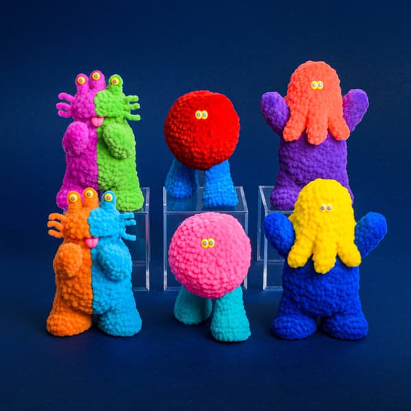 Fujisaki's "Mall Alien" characters are known for their colorful, long fluffy coat made from モール (chenille/pipe cleaner material) and their wide, blank-staring eyes peeking through. The "Mall Mutant" characters are the colorful monsters born from a sudden mutation of モール strands that fell away from the Mall Aliens — each possessing unique abilities and living together by compensating for one another's weaknesses.