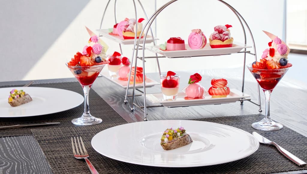 THE RAY, the restaurant on the 7th floor of the Annex at Rihga Royal Hotel Osaka (Vignette Collection), is serving a "Rose and Afternoon Tea Lunch" from May 7 (Thursday) to June 29 (Monday), 2026. Available by online reservation only and limited to 20 servings per day, the course combines French cuisine with a full array of rose-themed sweets.