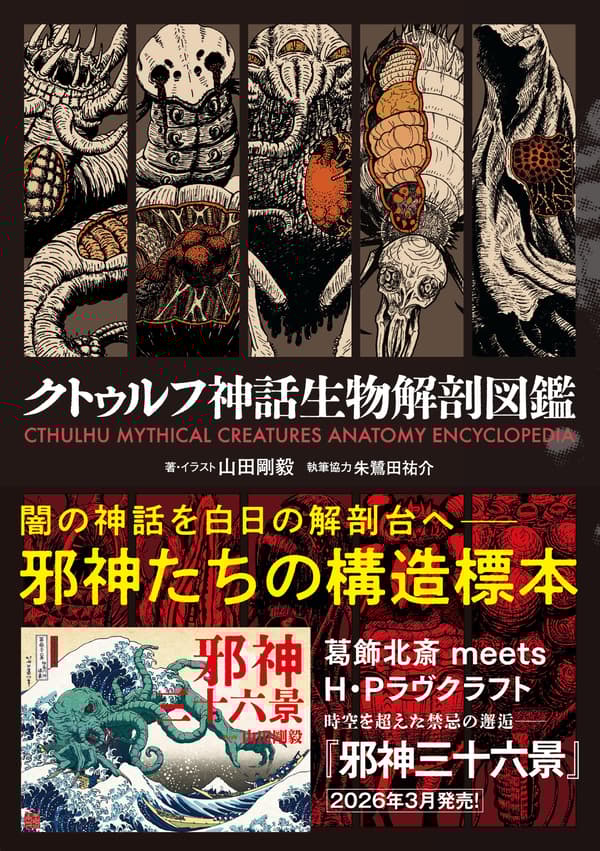 Customers who purchase Thirty-six Views of Jashin at participating bookstores will receive a postcard featuring illustrations from the book. Customers who purchase the author's popular previous work, Cthulhu Mythos Creature Anatomy Illustrated Guide (Shuwa System Shinsha), will receive an illustrated bookmark.