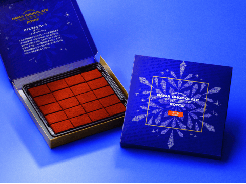 El Nama Chocolate [Au Lait] No. 1 de ROYCE' en un empaque limitado de invierno con delicados y hermosos cristales de nieve. Caracterizado por una textura suave como la leche que se derrite en la boca y un suave sabor a leche.