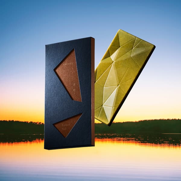 Chocolate que expresa el paisaje nocturno cambiante, encapsulando escenas atmosféricas. Yoru-iro ARIAKE combina chocolate de cacao indonesio con la acidez y el amargor del limón azul, acentuado con sal suave. El limón azul de “Itoshima Lemon” se procesa en polvo internamente y se usa junto con la sal “Mataichi no Shio”.