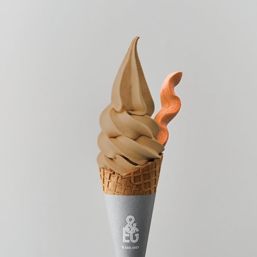 Lograr un intenso sabor a té en un helado suave requiere un gran volumen de hojas de té: &EARL GREY utiliza un proceso de extracción con aproximadamente 50 veces más hojas de lo habitual. Conocido como un "té con leche bebible en forma sólida", este helado suave atrae constantemente largas colas en eventos pop-up en todo Japón. Se sirve con merengue de frambuesa.